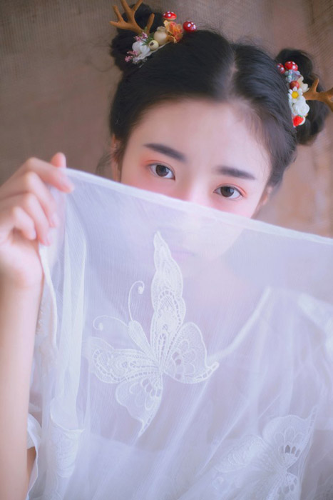 张雅钦丸子头白纱裙可爱清纯写真照(8)