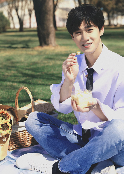 李昀锐白衬衫阳光帅气春日樱花写真照