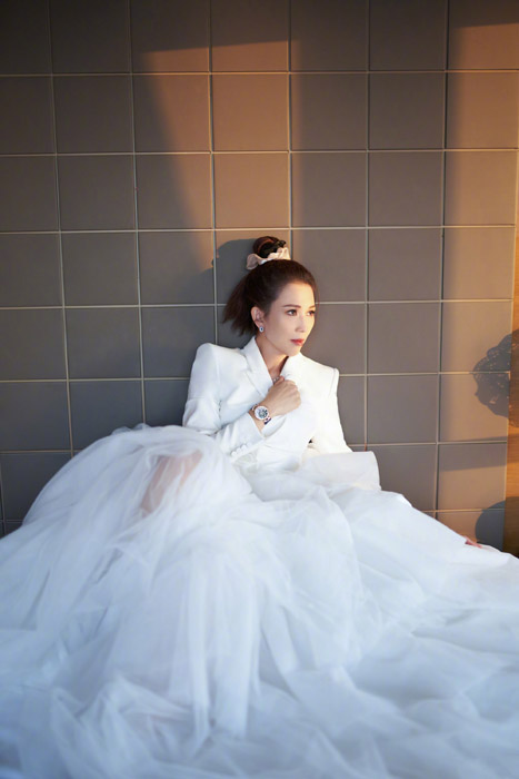 蔡少芬纯白西装婚纱简约时尚写真照