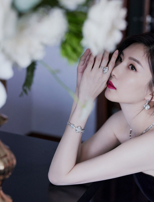 江疏影黑色蝴蝶结抹胸礼服明艳写真照(8)