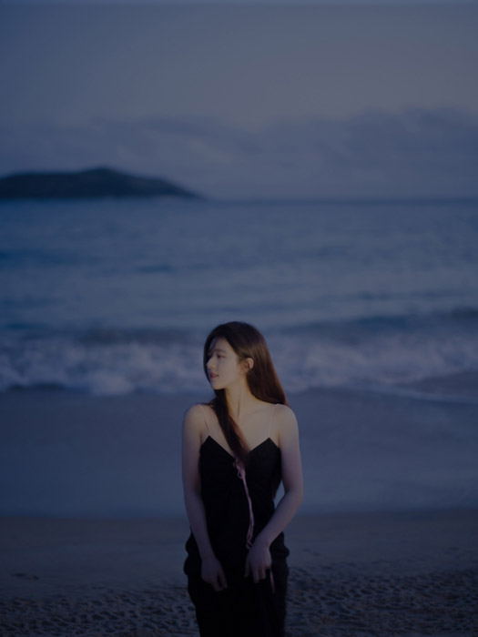 赵露思粉黑吊带裙冷艳纯欲风沙滩时尚写真照