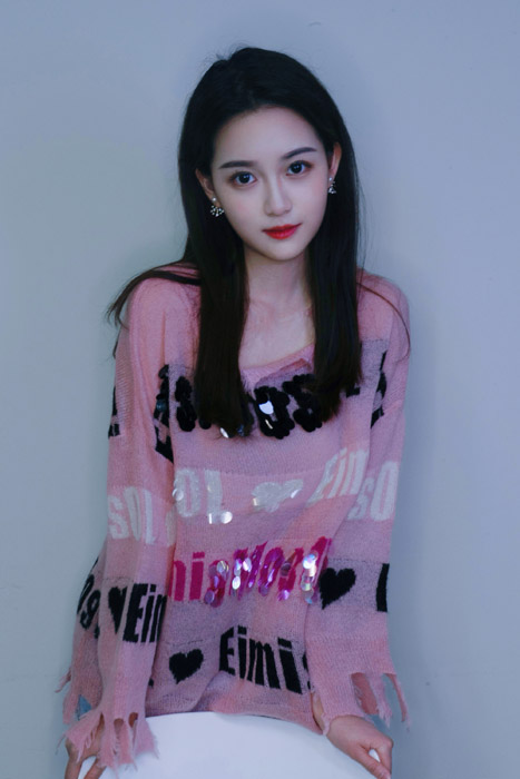 李百惠粉衣清纯恬静写真照
